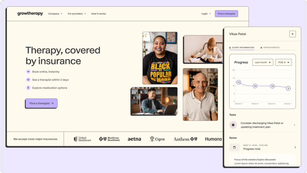 Every day we endeavor to make one of the toughest, yet most critical jobs in America – being a therapist – more rewarding, sustainable, and easier. Our goal is to help therapists and mental healthcare providers focus on delivering quality care to their communities by supporting them with insurance billing, patient referrals, scheduling, note-taking, and peer networks. In doing so, we open up opportunities for patients to find the care they need.