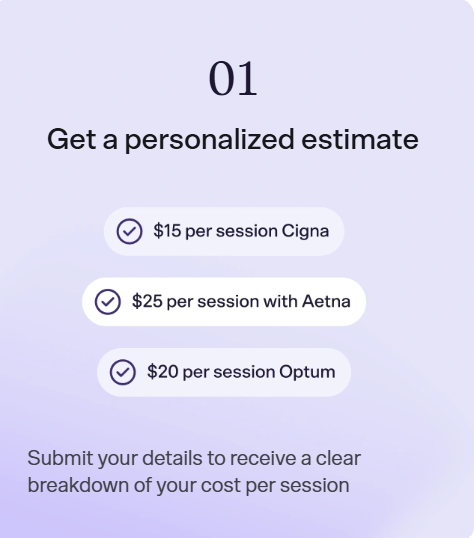For clients without insurance or for those whose plan isn’t accepted, the full session fee must be paid out of pocket, and these rates vary by provider. Rula does offer cost estimates during the onboarding process, but clients need to enter personal and insurance details first before they can see a price specific to their situation.